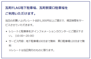 瓦町FLAGは高松市の中心商業施設で、アパレル・雑貨・飲食・書店・イベントスペースなどが揃っており、通院のついでに買い物やカフェ利用も可能。また、地下駐車場・東口駐車場と提携しており、当日1,000円以上の買い物で最大120分の駐車サービスが受けられるため、車での通院にも対応しています。