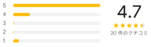 ★★★★☆(4.5) 「実績豊富」「安心感」「スタッフ対応◎」 |